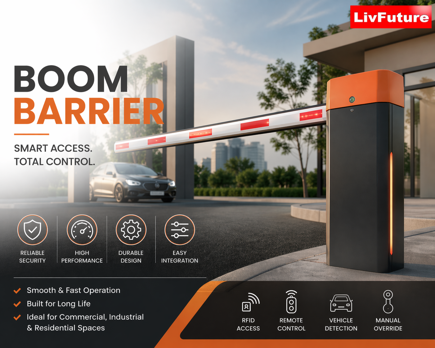 LivFuture Automation & Security Pvt. Ltd. is the smart solution when it comes to Gate Automation, Door Automation, Boom Barrier, and security automation Systems. We have a wide range of variety of products to choose from.
